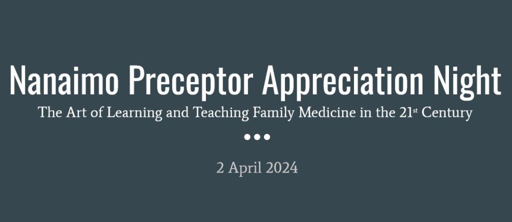 I had the honour and privilege of spending an evening with 25 other Family Doctors who are teachers (preceptors) with the UBC Family Practice Residency program in Nanaimo. I was joined with my amazing young colleague and friend, SC, who is an inspiration to me with teaching and living Family Medicine (thank you S!).