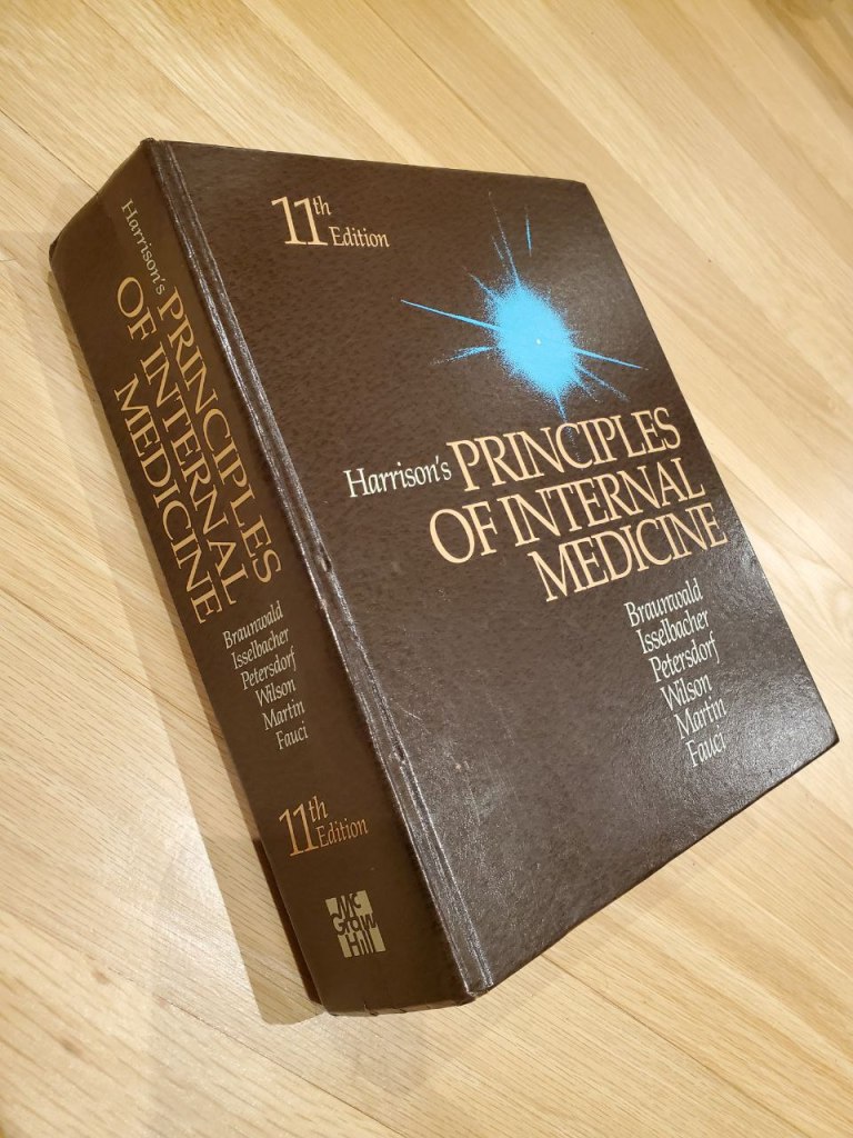 As an example, I had brought my old Harrison’s Principle of Internal Medicine from 1988 which was chock full of medical information goodness (2118 pages)! My Christmas present for that year! Reading out the passage below of what it means to be a physician.
