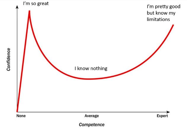 This graph represents the Dunning-Kruger Effect. When a little bit of knowledge is dangerous and can give a person a false sense of confidence even arrogance like a certain (former) President T. Even experts don’t know it all and hence there still exists a degree of humility and limitation in what is known.