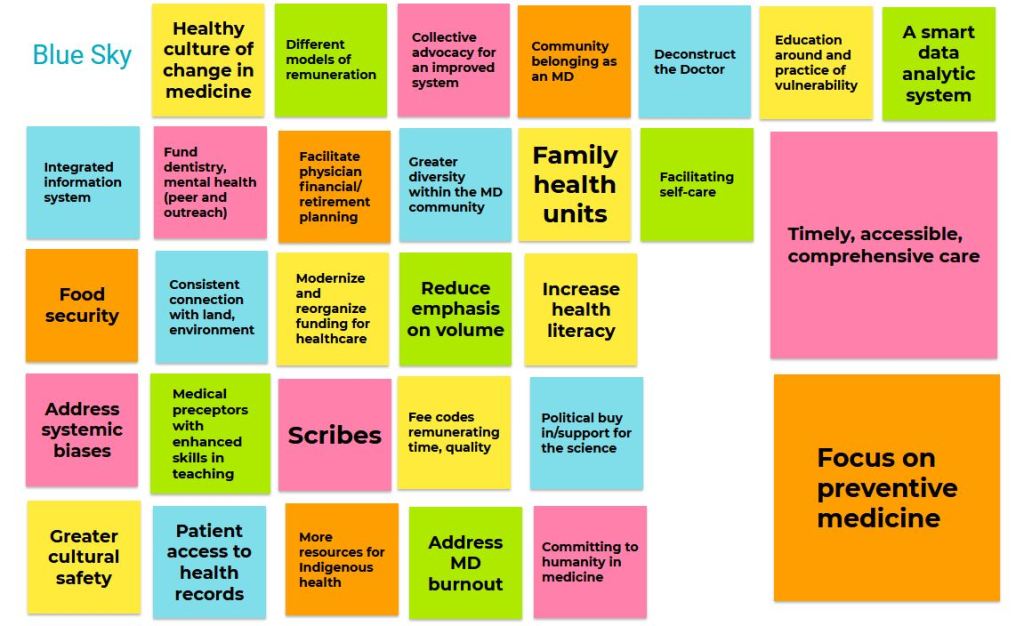 In January, we also had our annual Blue Sky Medicine TRIZ Exercise (see https://blueskyfamilymedicine.family.blog/2020/06/28/the-future-is-bright-for-blue-sky-family-medicine/) with our very savvy R1 Family Medicine residents (thanks team!) and we were joined by a very wise, younger colleague (SC) out in practice for the past few years and as always, it was magic! All of the answers on how to build a better primary care system and healthier planet are right here!