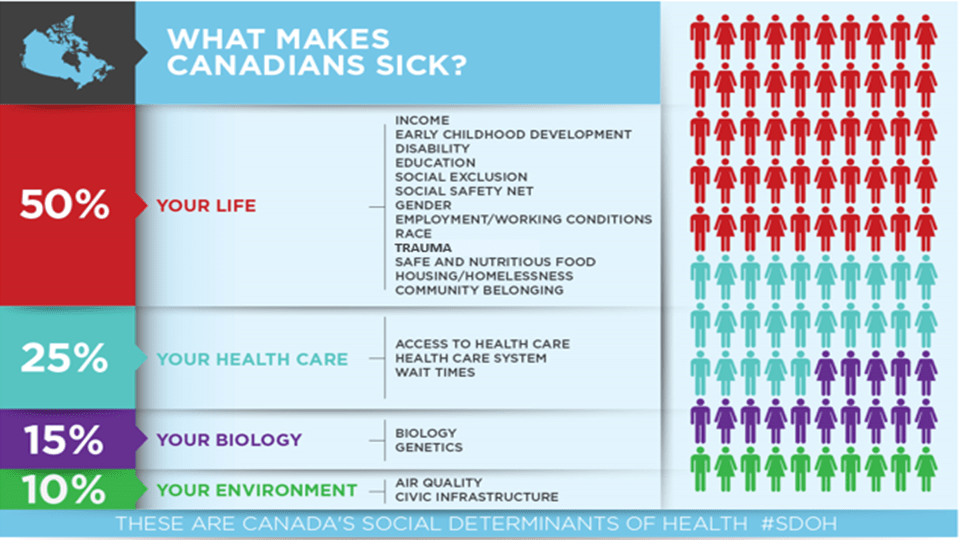 YOUR LIFE (50%) like INCOME, SOCIAL SAFETY NET and COMMUNITY BELONGINGNESS have more impact on YOUR HEALTH than HEALTH CARE (25%)